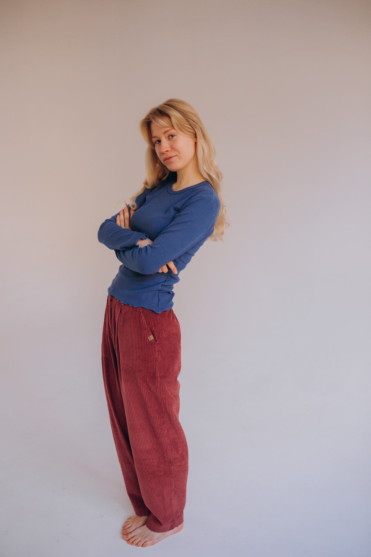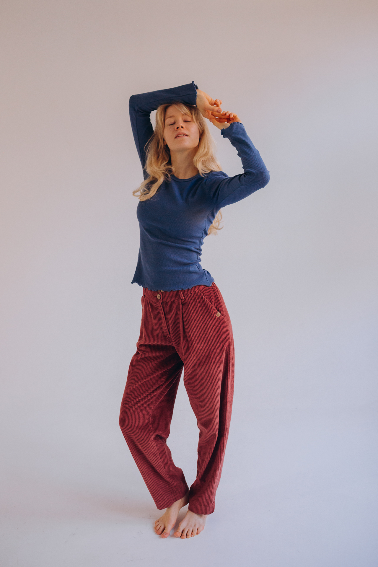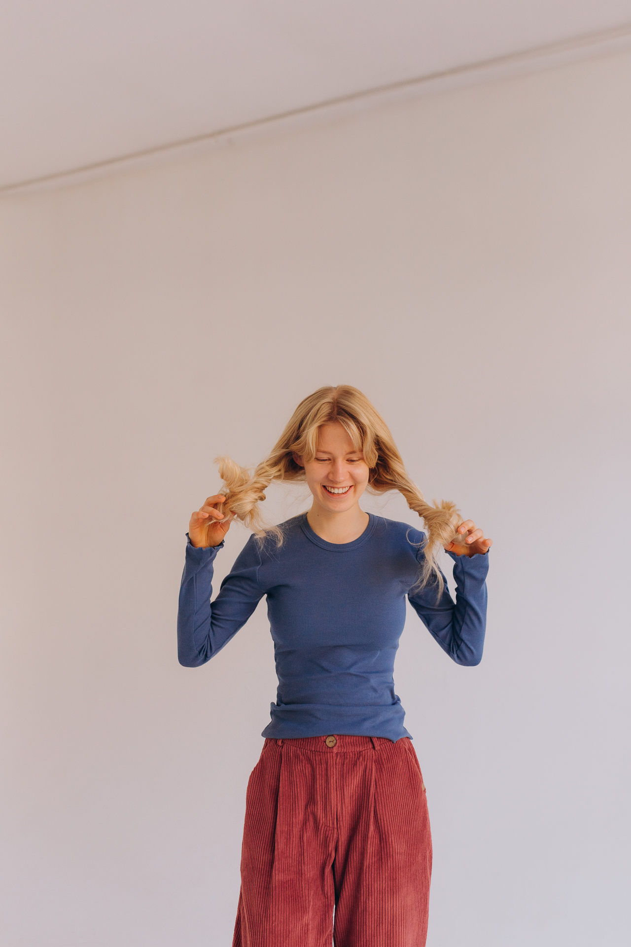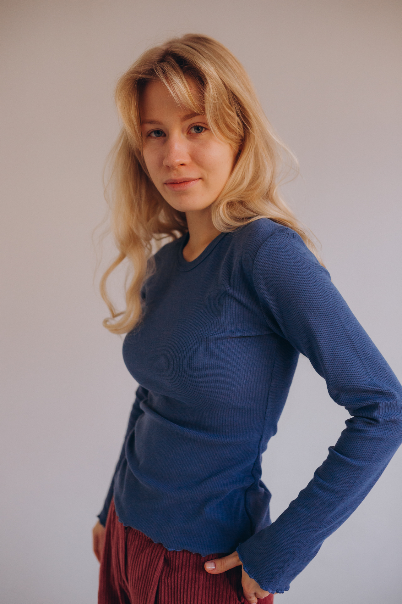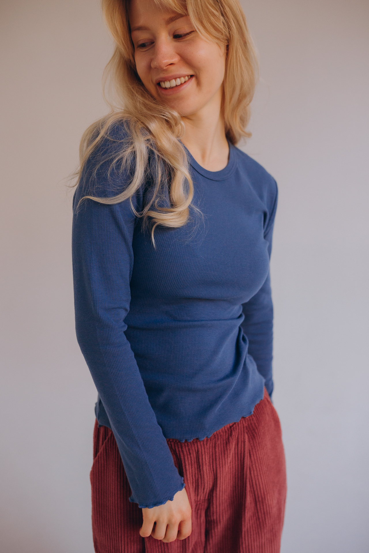 Blisko to ten longsleeve, który zakładasz i od razu czujesz… właśnie to. Miękkość przy skórze, wygodę, która nie udaje, subtelność, która nie narzuca się, tylko jest obok — dokładnie tak, jak lubisz. Uszyliśmy go z prążkowanej, bawełnianej dzianiny, która dopasowuje się do Twojego ciała i rytmu dnia. Oddycha razem z Tobą.