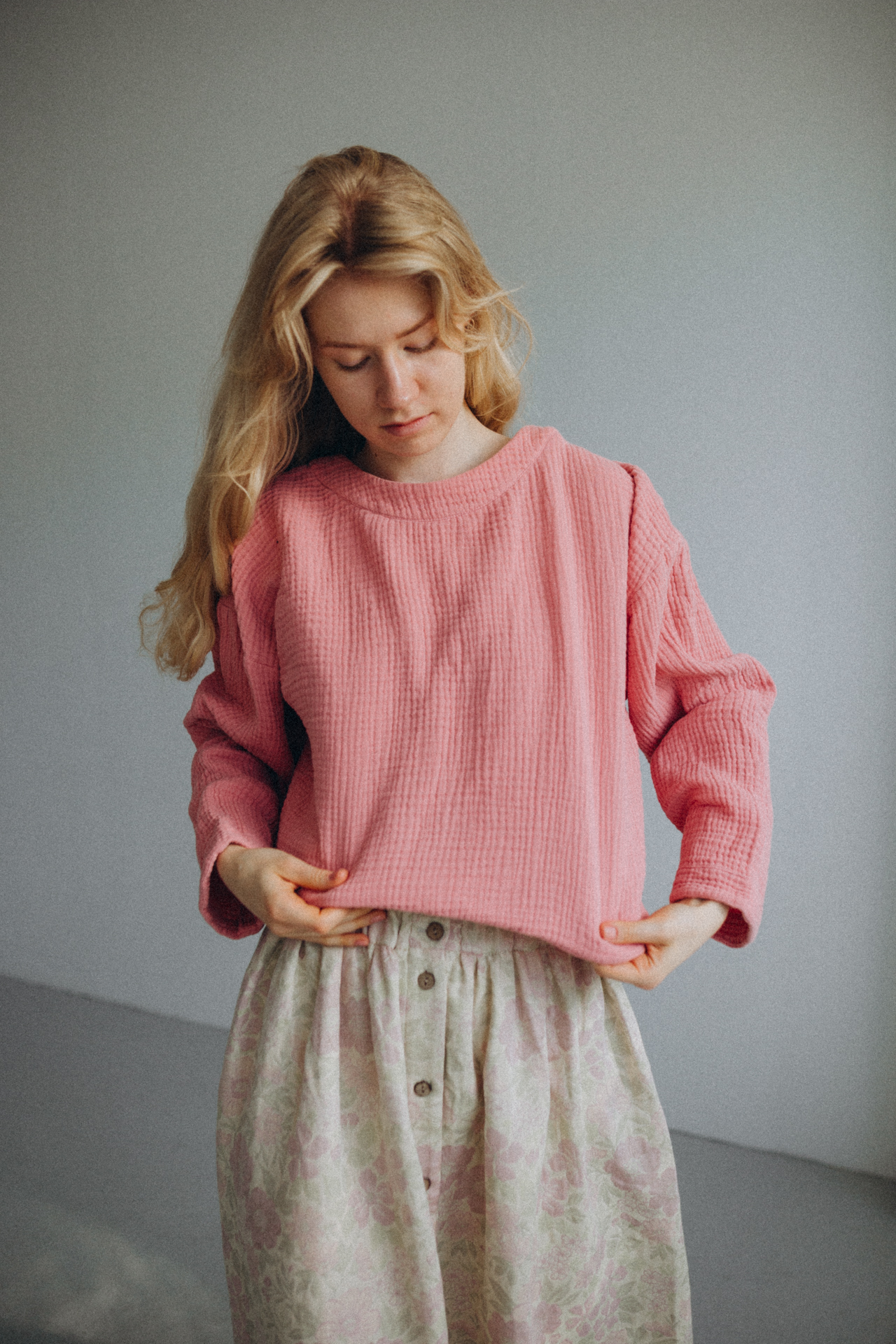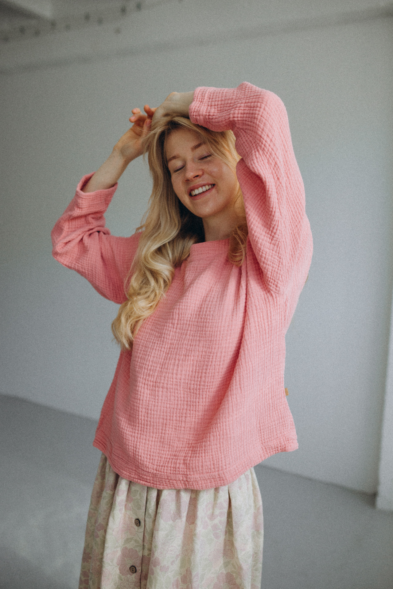 Poznaj odświeżoną wersję naszego bestsellerowego muślinowego longsleeve’u. Lekko to koszulka z długim rękawem uszyta z cudownie miękkiej certyfikowanej bawełny organicznej o strukturze muślinu. Tak przyjemny i delikatny dla Twojej skóry, że nie będziesz chciała się z nim rozstawać nawet w najbardziej upalne dni. Jeśli masz jasną i/lub wrażliwą skórę jego długi rękaw Lekko ochroni Cię przed słońcem. A jego oversizowy krój i swobodne rękawy zapewnią Ci wygodę w każdej sytuacji. W nowej odsłonie longsleeve ma odrobinę wydłużony tył. Ze spodniami o tej samej nazwie stworzy muślinowy total look, w którym wszędzie poczujesz się dobrze jak w domu.